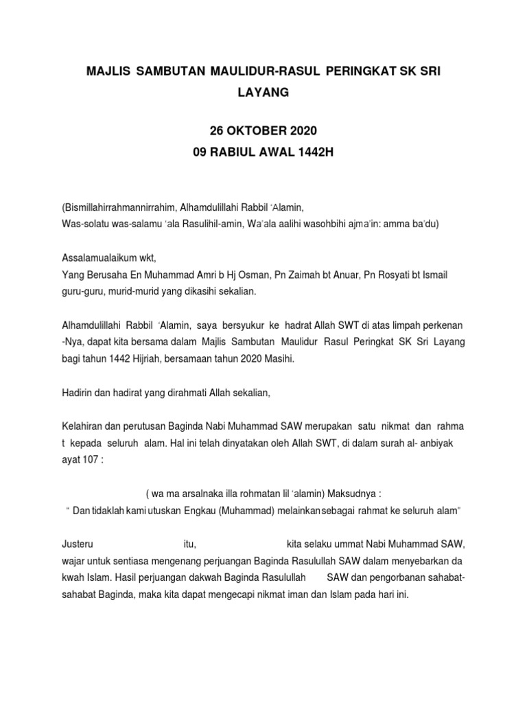 Teks Ucapan Perasmian Maulidur Rasul Pdf