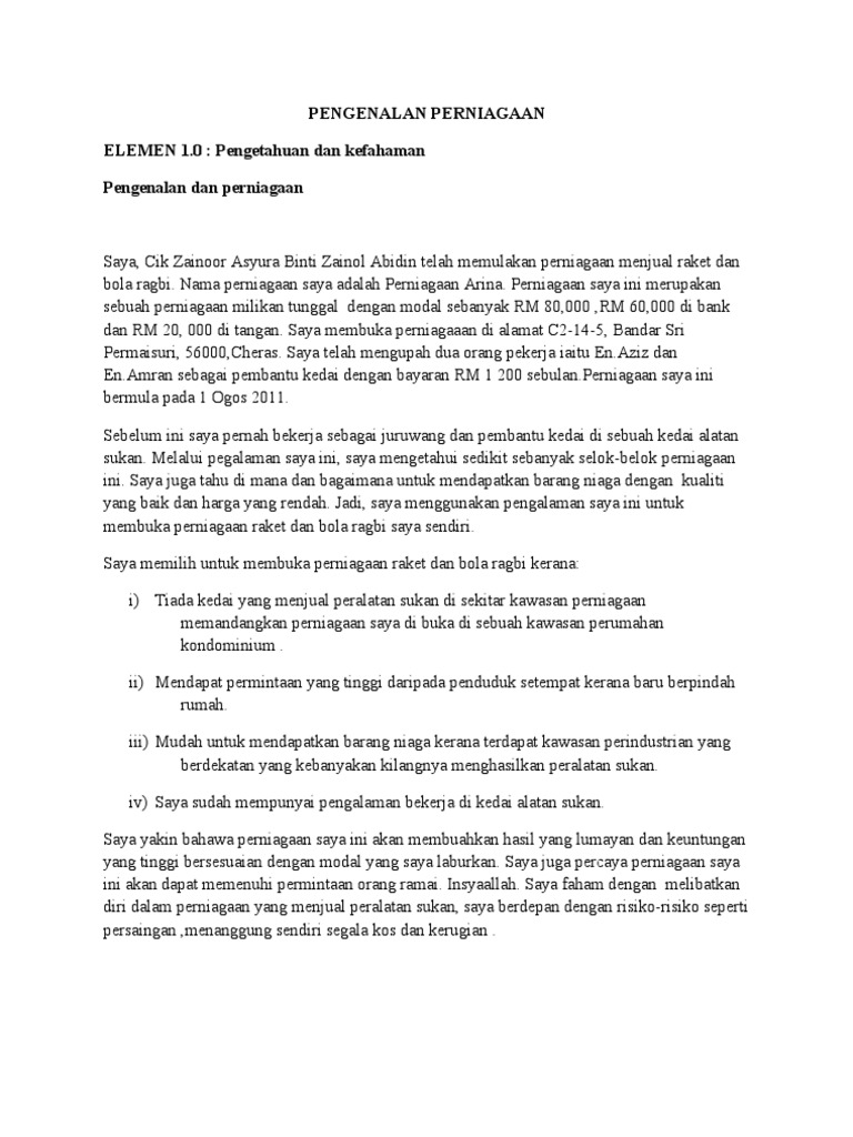 Contoh Pengenalan Perniagaan Pdf